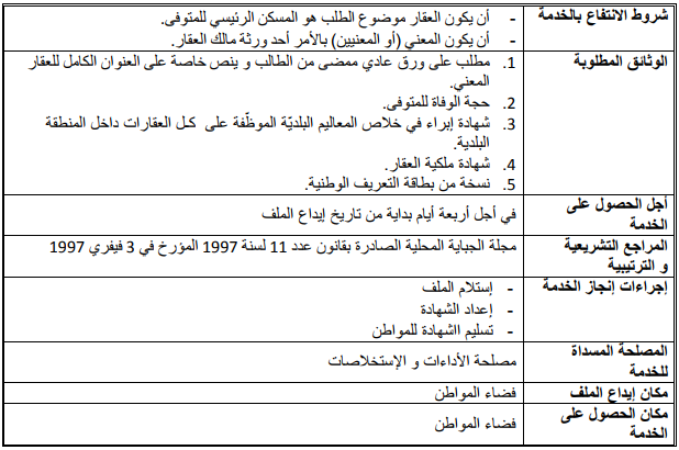 شھادة ترسیم عقار بجدول التحصیل