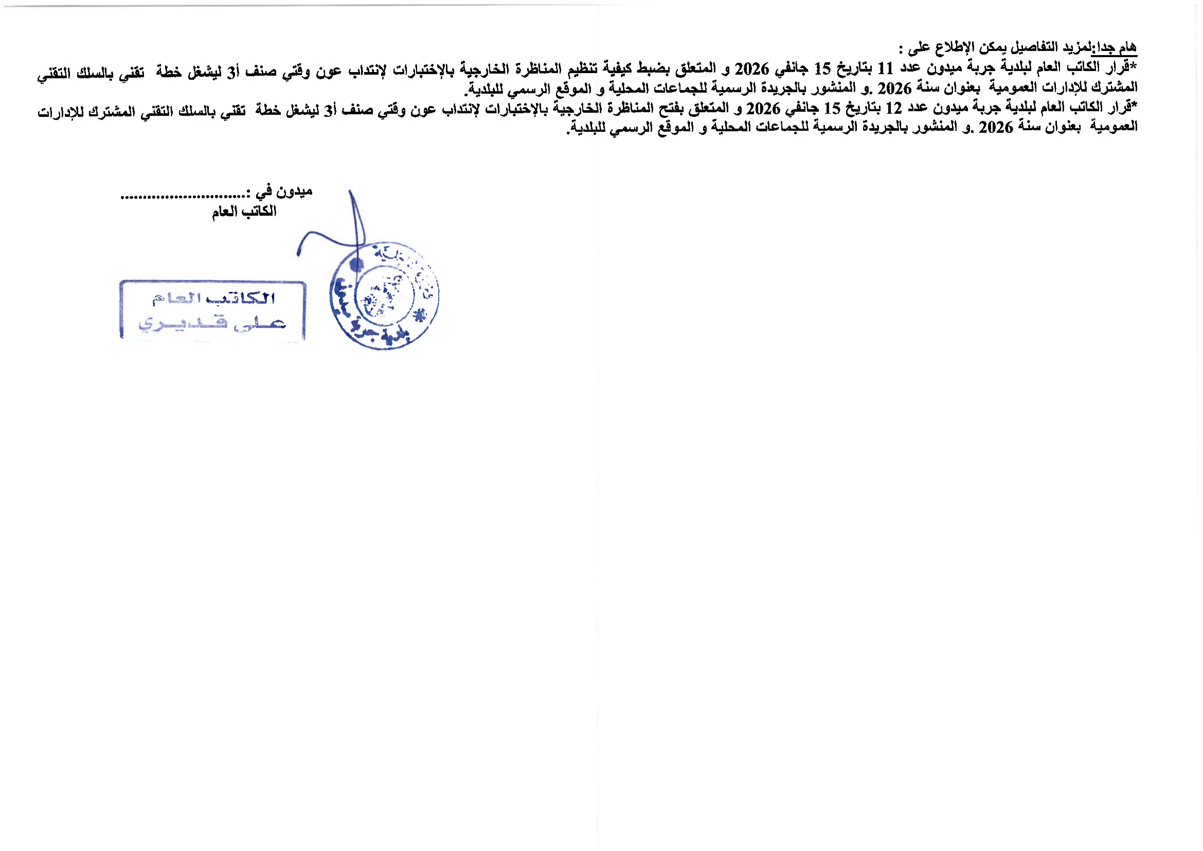 بلاغ اجراء مناظرة خارجية بالاختبارات لانتداب أعوان وقتيين