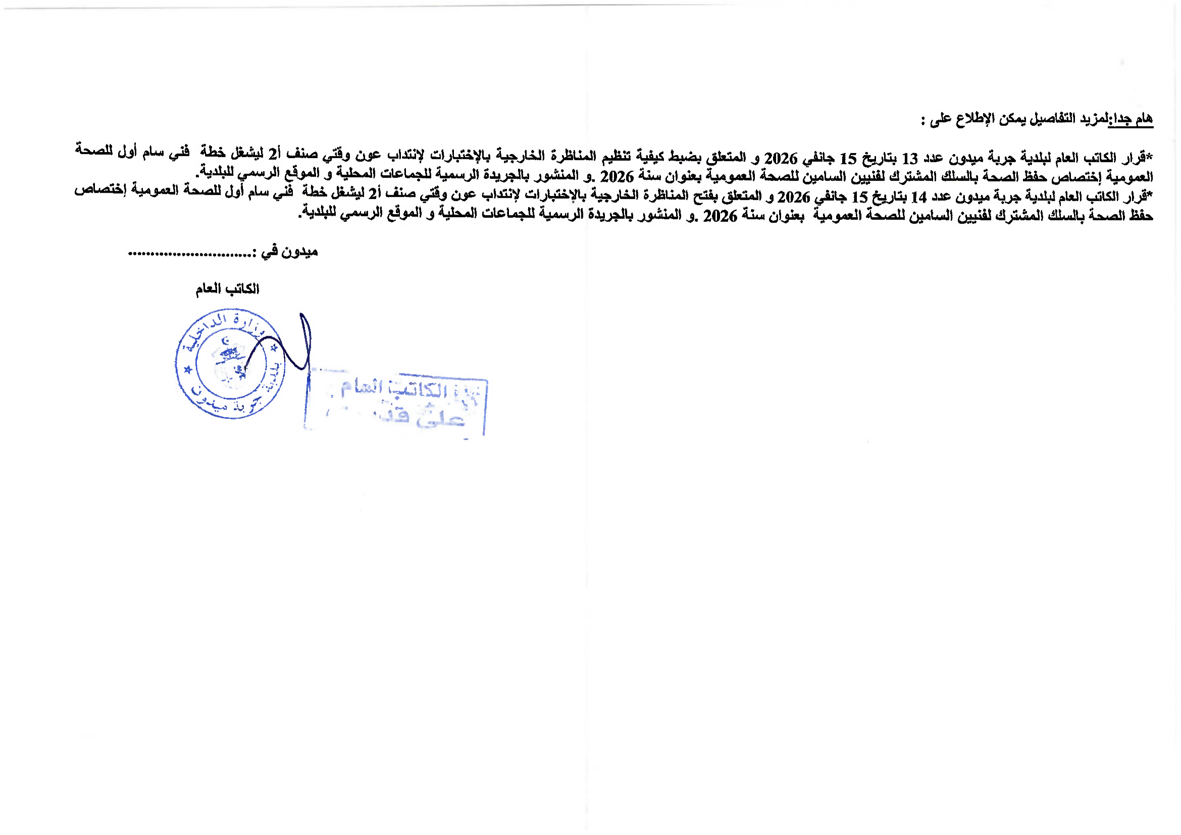 بلاغ انتداب فني سامي أول الصحة العمومية